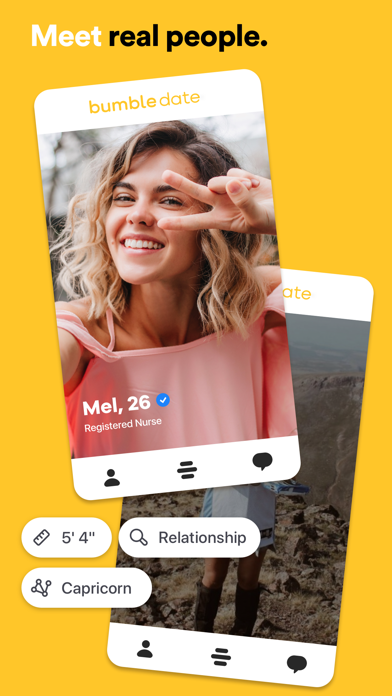 Download Bumble the app is very simple to use and it is very easy to find new people nearby you. You can also see the user's profile when you swipe left. If you swipe right, you will be allowed to talk to the user. I really like this feature because when you swipe left, it shows a profile that has a short description of the person. That way, you can avoid people that you do not want to talk to.